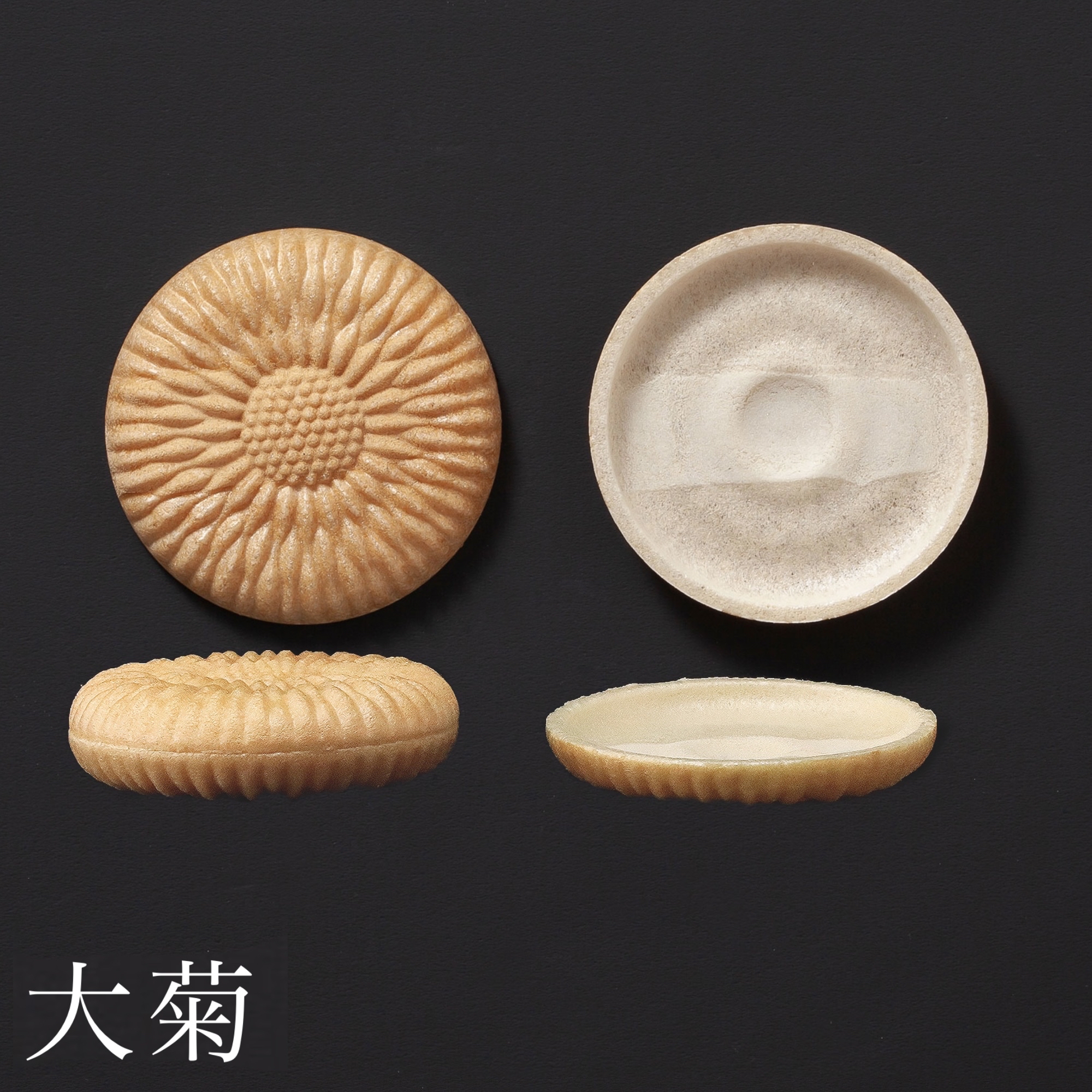 每包十對 10 pairs per pack * 菊花或唐松設計 * 直徑:67mm / 高:10mm 日本的Monaka脆皮,製作考究,使用專用的金屬模具烤製,模具都是手工雕刻的,設計細緻,花款繁多,每款都有其特別意義。淺碟形狀,放配料作小點美觀性十分高。配鹹甜點皆可,忌廉、雪糕、芝士、魚籽、風乾火腿、什至芝士焗肉碎也可! 成份: 日本国産糯米、水飴 * Intricate chrysanthemum or pine design * Diameter 6.7cm / Height 1cm Japan's renowned Monaka crispy skin is exquisitely made with special metal moulds. The moulds are hand-carved, with very intricate design and a variety of shapes. Each design has its own special significance. The shape of a shallow dish is very attractive with ingredients placed inside. They can be served savoury or sweet, including cream, ice cream, cheese, fish roe, jamon, or even minced pork baked with cheese! Ingredients: Japan glutinous rice, mizuame sweetener