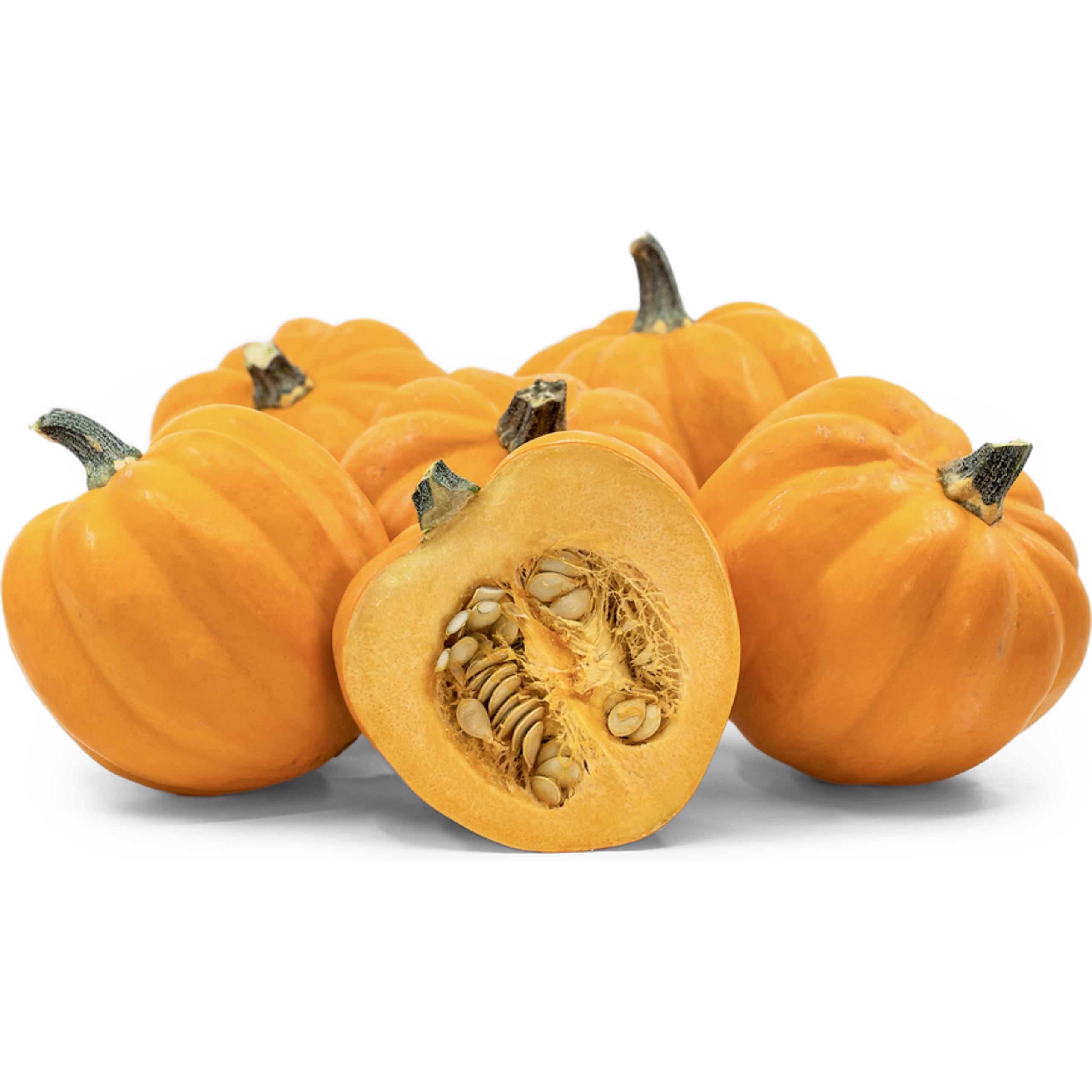 每個約600g each * 帶堅果甜味,鹹甜甜皆可 * 適合烤、焗、釀 * 與肉桂、孜然、肉豆蔻特別搭配 橡子南瓜因其帶堅果甜味而深受喜愛,非常適合烤焗、釀入餡料。將之切成兩半,去除中腔帶絲的種子。這種南瓜與肉桂、孜然和肉豆蔻等香料特別配。 * Nutty-sweet taste * Bake, broil or stuff * Pairs well with cinnamon, cumin and nutmeg Loved for its nutty-sweet taste, gold acorn squash is great for oven-roasting, broiling or even stuffing. To prep for cooking, slice in half and scoop out the stringy center pocket of seeds. This type of squash goes well with spices like cinnamon, cumin and nutmeg.