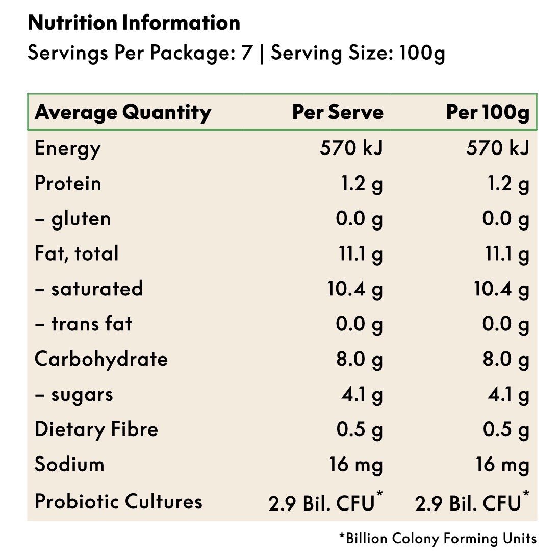 每樽700ml per bottle * 品牌最暢銷產品,獲獎無數 * 不含奶類、麩質、精製糖、防腐劑 * 純素、非基因改造、原始飲食 * 紐西蘭第一家完全零碳認證的乳酪製造公司 * B Corp™ 共益企業認證 快樂的腸道需要足夠的益生菌!將之加到乳酪中的純素飲食對你的腸道十分有益。身體的好細菌和壞細菌,需要保持平衡,才能保持健康。每份乳酪含數億CFU益生菌(菌落形成單位),幫助您保持高含量的有益細菌,有助於提升免疫力。 Raglan 將「最佳」定義為天然和可持續的產品,100%以植物為基礎,需儘可能少的成份和加工,專注做好基礎提供出色的產品,風味、味道和質量都能吸引廣泛客戶。B Corp™ 共益企業認證是符合經驗證的社會和環境績效、公共透明度和法律問責制最高標準的企業,以平衡利潤和願景。 📌 椰子乳酪是由椰肉和發酵椰奶製成,產品含活性益菌,酸味和氣泡屬正常現象 成份: 椰漿、水、濃縮菠蘿汁、士多啤梨6%、天然未經加工澱粉、檸檬汁、天然香料、濃縮黑加侖子和紅蘿蔔、活性純素乳酸菌 儲存溫度:4°c 開封後請於10天內食用 紐西蘭製造 * Best seller and award winner * Dairy free, gluten free, free from refined sugar, and preservatives * Vegan, non-GMO and paleo * NZ’s First Toitū Carbon Zero Certified Yoghurt Company * Certified B Corporation PROBIOTICS FOR A HAPPY TUMMY! The live vegan cultures added to the yoghurts are great for your gut! Your body has both good and bad bacteria that need to be balanced in order for you to be at your healthiest. Each serving of this yoghurt contains Billions CFU (Colony Forming Units) of probiotics, helping you maintain high levels of good bacteria that assist with immunity. RFC defines ‘the best’ as products that are natural and sustainable, 100% plant-based, require as little as possible ingredients and processing, and provide excellent taste and quality of products and flavours that widely appeal to our customers. We focus on doing the basics really well, rather than getting distracted by niche offerings. Certified B Corporations are businesses that meet the highest standards of verified social and environmental performance, public transparency, and legal accountability to balance profit and purpose. Ingredients: Coconut Cream, Water, Pineapple Juice Concentrate, Strawberry 6%, Natural Starch, Lemon Juice, Natural Flavour, Blackcurrant and Carrot Concentrate, Live Probiotic Vegan Cultures (Acidophilus & Bifidobacterium) Keep chilled at 4°c. Once opened, eat within 10 days. Made in New Zealand
